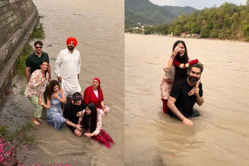 गंगा किनारे की यह तस्वीरें सोशल मीडिया पर काफी चर्चा में है जिसमें इनायत और करण एक दूसरे से प्रॉमिस करते नजर आ रहे हैं। फैमिली काफी खुश हैं और आपस में जमकर मस्ती कर रही है। कहा जा रहा है कि ये फोटोज सगाई के बाद की है। गौरतलब है कि अभी हाल ही में नवजोत सिंह सिद्धू जेल से रिहा हुए थे और उनकी पत्नी नवजोत कौर को कैंसर है। ऐसे में यह शादी वाकई सिद्धू फैमिली के लिए काफी खास होने वाली है।