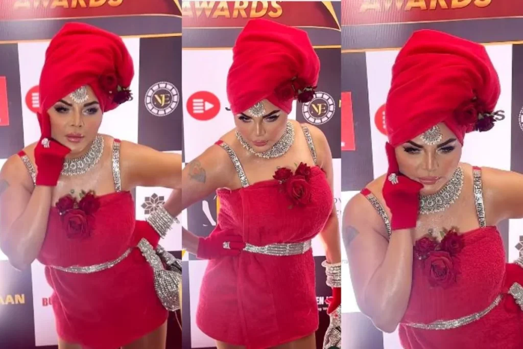 हर बार की तरह इस बार भी राखी ने अपने लुक और बेबाकी से हर किसी की निगाहें अपनी और खींच ली हैं। दरसल, एक्ट्रेस इस बार एक रीसेंट इवेंट में बोल्ड या स्टाइलिश ड्रेस नहीं बल्कि एक रेड कलर का टॉवल लपेटे नजर आईं। यहीं अगर बात की जाए उनके पूरे लुक की तो, राखी ने अपने इस लुक को और भी बवाल बनाने के लिए डायमंड की ज्वैलरी, ग्लव्स और सिर पर टॉवल की कैप को चुना।