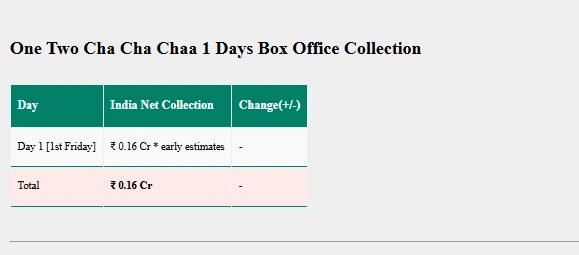 One Two cha cha cha Box Office Collection Day 1 कितना हुआ?