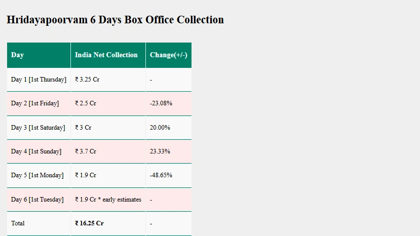 साउथ के जाने-माने एक्टर Mohanlal की Hridayapoorvam फिल्म को रिलीज हुए भी 6 दिन हो चुके हैं। ये एक इमोशनल फैमिली ड्रामा है।