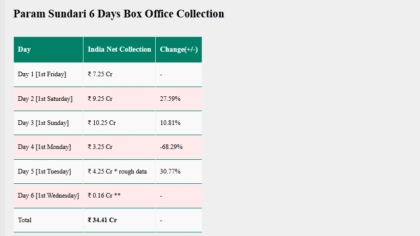 Param Sundari Box Office Collection Day 6 में आयी कमी