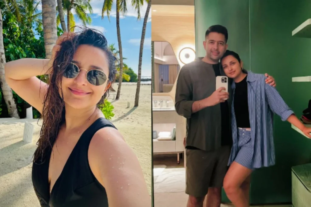 Parineeti Chopra: बॉलीवुड एक्ट्रेस परिणीति चोपड़ा (Parineeti Chopra) एक बार फिर अपने पति और आप (AAP) नेता राघव चड्ढा (Raghav Chadha) के साथ रोमांटिक नजर आई। सोशल मीडिया पर वेकेशन की तमाम झलकियां शेयर कर लोगों को खास तोहफा देती दिखी। दरअसल इन तस्वीरों को शेयर करते हुए परिणीति ने यह भी बताया कि यह थ्रोबैक है। जहां हाल ही में परिणिति और राघव शादी की पहली सालगिरह मनाने के लिए रिजॉर्ट में पहुंचे थे और इस दौरान उनकी रोमांटिक तस्वीरें खूब वायरल हुई थी। अब ऐसे में लेटेस्ट तस्वीरों में क्या है खास। आइए देखते हैं।