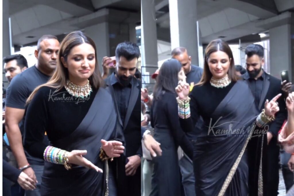 आपको बता दें कि इन दिनों एक्ट्रेस परिणीति चोपड़ा का एक वीडियो इंस्टाग्राम अकाउंट पर अपलोड किया गया है जो कि तेजी से ट्रेंड कर रही है, इसमें अदाकारा खूबसूरत काली साड़ी पहने एकदम अलग लुक में नजर आ रही हैं. साथ ही उन्होंने गले में खूबसूरत हार और हाथों में ढेंर सारी चूडियां भी पहनी हुई हैं, वहीं इस बीच जो कुछ होता है उस वजह से यह वीडियो हर जगह धमाल मचा रही हैं.