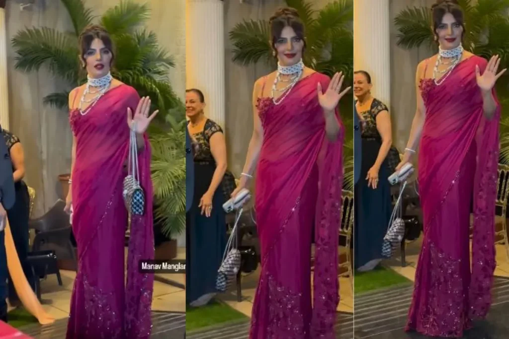 Priyanka Chopra: बॉलीवुड से हॉलीवुड का सफर तय करने वाली देसी गर्ल प्रियंका चोपड़ा भाई की शादी की रस्मों में शामिल होने के लिए भारत आयी हुई हैं। इस दौरान वह बेटी और पति के बिना अकेले ही मुम्बई पहुंची हैं। प्रियंका चोपड़ा अपने भाई सिद्धार्थ की शादी की रस्मों में बहुत ही अलग अंदाज में स्पॉट हुई हैं। भाई सिद्धार्थ चोपड़ा और उनकी मंगेतर नीलम उपाध्याय की शादी की रस्म में एक्ट्रेस ने देसी लुक चुना। प्रियंका चोपड़ा ने मजेंटा कलर की साड़ी पहनी हुई थी। बालों में उन्होंने बन कैरी किया हुआ था। प्रियंका ने डायमंड की ज्वेलरी पहनी हुई थी और वह ग्लॉसी मेकअप के साथ छा गई। देसी गर्ल के इस अवतार से नजर हटाना मुश्किल हो गया। एक्ट्रेस के लुक ने फैंस का दिल जीत लिया है।