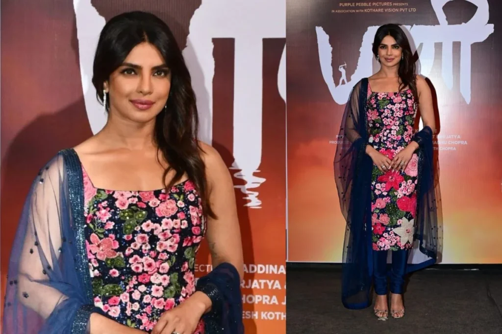 प्रियंका चोपड़ा इस दौरान ब्लू स्लीवलेस फ्लोरल सूट और चूड़ीदार पजामे के साथ दुपट्टे में नजर आई। ओपन हेयरस्टाइल और मिनिमम मेकअप से वह अपने इस लुक को कंप्लीट टच दे रही थी। उनका यह देसी लुक फिलहाल लोगों के दिलों को जीतने के लिए काफी है।