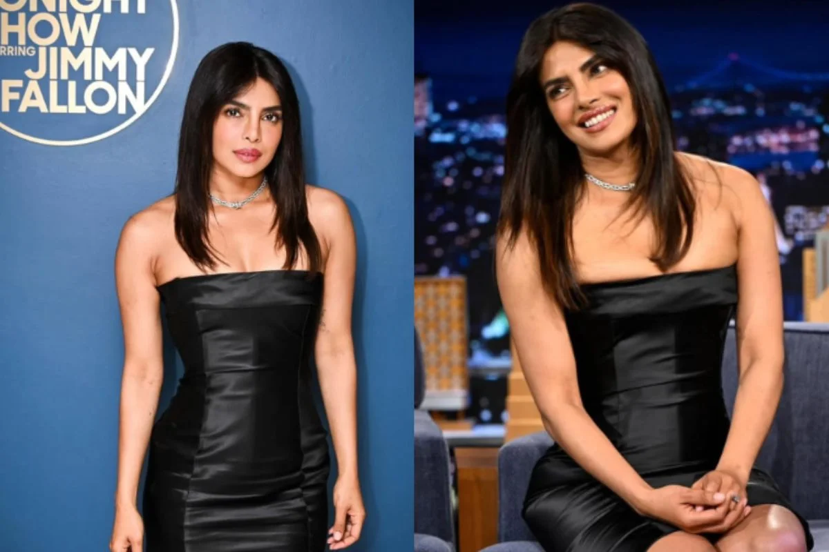 Jimmy Fallon के The Tonight Show से फिलहाल चर्चा में बनी हुई है और टीम की तरफ से शेयर की गई झलकियों की बात करें तो इसमें वह ब्लैक ड्रेस में नजर आ रही है। उन्होंने अपने लुक को मिडिल पार्ट हेयर स्टाइल के साथ कंप्लीट करती दिख रही है। वहीं डायमंड नेकलेस उनकी खूबसूरती में चार चांद लगाने के लिए काफी है। न्यूड लिप शेड्स और ग्लॉसी मेकअप में प्रियंका चोपड़ा अपनी फिटनेस और खूबसूरती से सुर्खियां बटोर रही है और उनका यह किलर स्टाइल देखने लायक है।