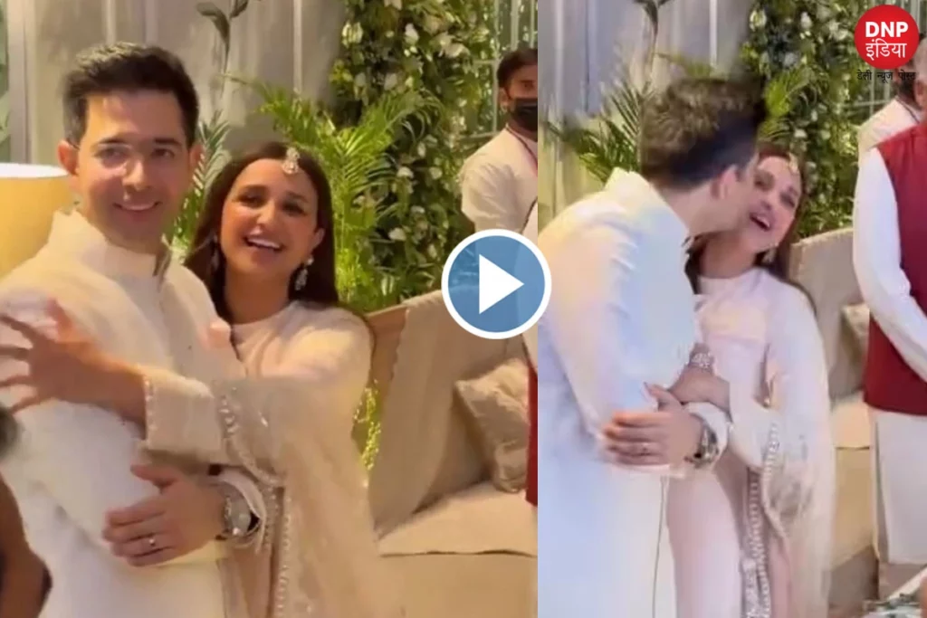 Parineeti Chopra Raghav Chadha: बॉलीवुड एक्ट्रेस परिणीति चोपड़ा ने आप नेता और सासंद राघव चड्ढा के साथ शनिवार को सगाई कर ली है। कपल की इंगेजमेंट सेरेमनी की खूबसूरत फोटोज और वीडियो फिलहाल सोशल मीडिया पर जमकर वायरल है जिसमें दोनों के बीच की केमेस्ट्री देखने लायक है। सगाई से कई वीडियो भी वायरल हो रहे हैं और इनमें से एक ने लोगों का दिल जीता है। वीडियो में परिणीती और राघव एक-दूसरे पर खास अंदाज में प्यार लुटाते नजर आए हैं और इस दौरान दोनों एक-दूसरे में खोए दिखे। ऐसे में इस वीडियो का चर्चा में आना लाजमी है। आइए देखते हैं आखिर क्या खास है इस वीडियो में।
