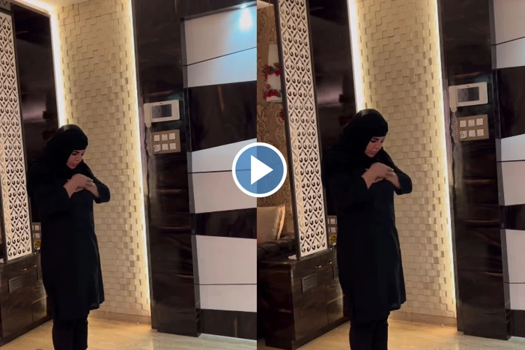 सोशल मीडिया पर वायरल हो रहे एक वीडियो को देख यूजर्स का गुस्सा फुट गया है। वीडियो में आप देख सकते हैं कि राखी ब्लैक सूट में नजर आ रही हैं और उन्होंने हिजाब पहनकर नमाज अदा करती दिख रही हैं। इस दौरान लोगों का जिस चीज ने ध्यान खींचा वह है उनका शॉर्ट पजामा और नेल पेंट। यह पहली बार नहीं है जब राखी को इस वजह से ट्रोल किया जा रहा है। वीडियो में राखी योगा मेट बिछाकर मोबाइल में कुछ सुन रही हैं और नमाज पढ़ रही है।