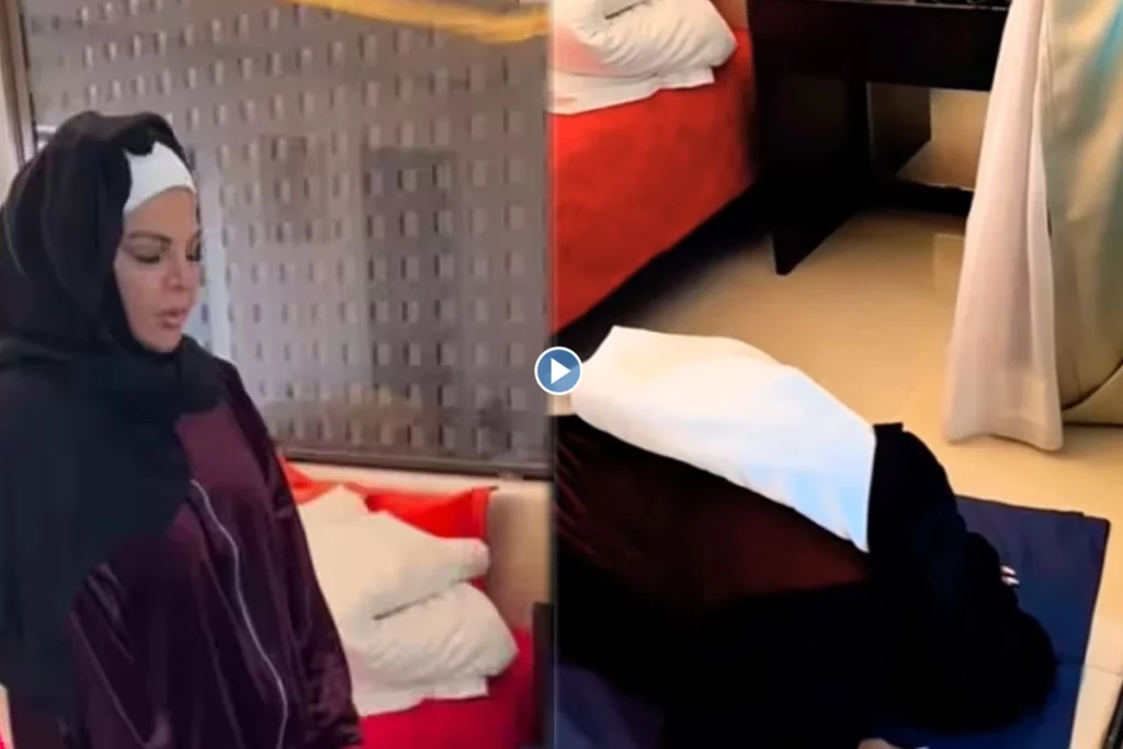 सोशल मीडिया पर वायरल हो रहे इस वीडियो में राखी ब्राउन ड्रेस के ऊपर हिजाब लपेटकर नमाज पढ़ती हुई नजर आ रही है। इस दौरान वह नेल पेंट और मेकअप में दिख रही है। यूजर्स को यह वीडियो पसंद नहीं आया तो वे एक्ट्रेस को ट्रोल करने लगे। बढ़ते हुए हंगामे को देखकर एक्ट्रेस ने सोशल मीडिया से इस वीडियो को हटा दिया लेकिन तब तक देर हो चुकी थी क्योंकि यह वीडियो अब कई प्लेटफॉर्म्स पर वायरल हो रहे हैं।