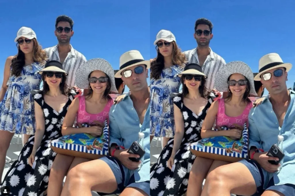 इटली की क्रूज पार्टी में रणबीर और आलिया फैमिली टाइम बिताते हुए नजर आ रहे हैं। दरअसल इस तस्वीर में न सिर्फ आलिया और रणबीर बल्कि अरमान जैन और उनकी पत्नी अनीसा जैन भी दिखाई दे रही हैं। इस तस्वीर को लोग खूब पसंद कर रहे हैं। करिश्मा कपूर ने इस तस्वीर को शेयर की जिसमें वह अपने कजिन ब्रदर और भाभियों के साथ एंजॉय करती हुई नजर आई है। तस्वीर सोशल मीडिया पर खूब वायरल हो रही है।