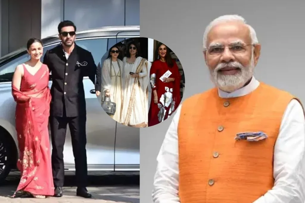 सोशल मीडिया पर तमाम वीडियो वायरल हो रहे हैं जहां पीएम मोदी से मिलने के लिए कपूर खानदान के खास लोग निकले हैं। जहां लाल साड़ी में आलिया भट्ट नजर आई तो ब्लैक सूट बूट में रणबीर कपूर उनके साथ पोज़ देते हुए दिखे। दूसरी तरफ करीना कपूर रेड कुर्ता में नजर आई तो डैपर लुक में सैफ अली खान भी दिखे। वहीं आईवरी कलर की ट्रेडिशनल ड्रेस में नीतू कपूर और करिश्मा कपूर एक साथ नजर आई।