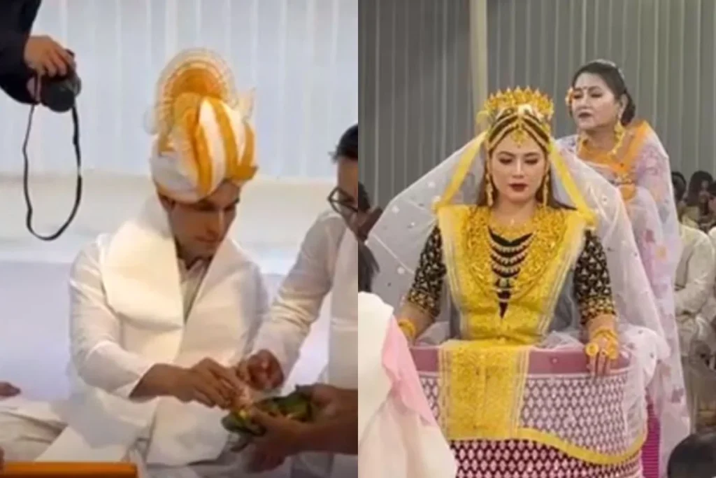 Randeep Hooda Lin Laishram: बॉलीवुड के मंजे हुए कलाकार में से एक रणदीप हुड्डा सोशल मीडिया पर काफी चर्चा में रहते हैं। फिलहाल एक्टर अपनी लॉन्ग टाइम गर्लफ्रेंड के साथ शादी को लेकर लाइमलाइट में है फैंस की नजरें वेडिंग फोटोज पर है। वहीं अब रणदीप का दूल्हा वाला लुक और दुल्हन बनी लिन चर्चा में है और फैंस उनकी तारीफ करते हुए नजर आ रहे हैं। 47 साल के रणदीप मणिपुरी दूल्हा वाले अंदाज में लाइमलाइट में आ गए हैं। वहीं फैंस दुल्हनिया यानी लिन लैशराम के लुक को देखते रह गए।