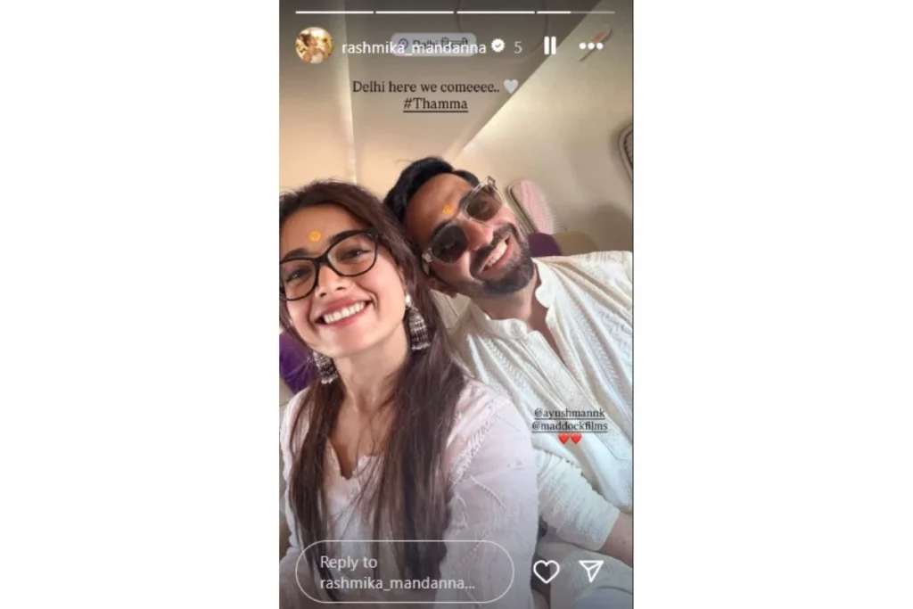 दिनेश विजन द्वारा निर्मित और आदित्य द्वारा निर्देशित ठाये 21 अक्टूबर को जारी होने के लिए तैयार है। इसमें मलाइका अरोड़ा से लेकर नोरा फतेही तक के आइटम सॉन्ग हैं। रश्मिका मंदाना की बात करें तो थामा के अलावा अपनी इंगेजमेंट की खबरों को लेकर भी चर्चा में बनी हुई है जहां कहा जा रहा है कि विजय देवरकोंडा के साथ उनलि सगाई हो चुकी है और शादी फरवरी 2026 में होने वाली है।