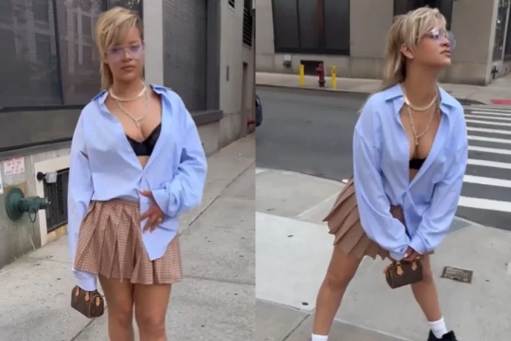 इस वीडियो को जिसने भी देखा हुआ देखते ही रह गया।रिहाना ने अपने लुक को व्हाइट सनग्लासेस और गले में डायमंड नेकपीस सेट को कैरी कर कंप्लीट कर रही हैं और इस दौरान अपने जूते जो ब्लैक कलर के हैं उन्हें फ्लॉन्ट कर रही हैं। हाथ में वह एक हैंडबैग लेकर नजर आई। अंडर गारमेंट को दिखाने के लिए रिहाना ने जिस तरह का पत्र अपनाया वह लोगों को हैरान कर देने के लिए काफी है।