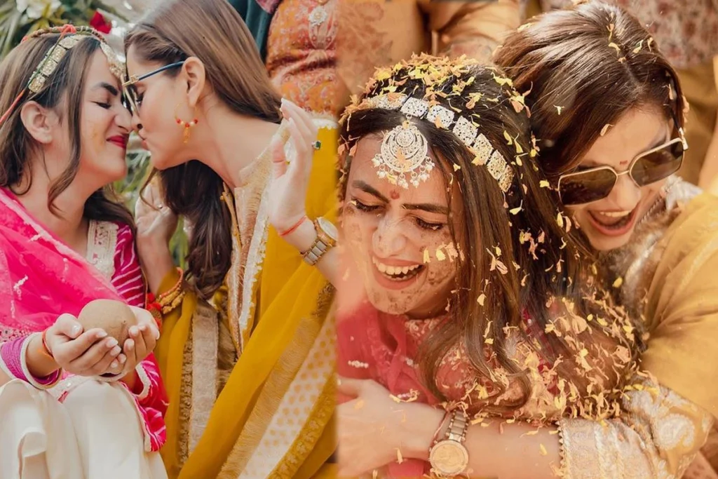 तस्वीरों में एक जबरदस्त सेलिब्रेशन की झलक साफ़ दिखाई दे रही है। ज्योतिका और रुबीना के बीच जबरदस्त बॉन्डिंग दिख रही है। इस दौरान रुबीना येलो ड्रेस में काफी खूबसूरत नजर आ रही हैं। हल्दी सेरेमनी में अभिनव शुक्ला भी नजर आ रहे हैं। हर किसी के ऊपर सेलिब्रेशन का खुमार दिख रहा है और वे मस्ती के मूड में नजर आ रहे हैं। हल्दी सेरेमनी की ये तस्वीरें वाकई काफी खूबसूरत है।
