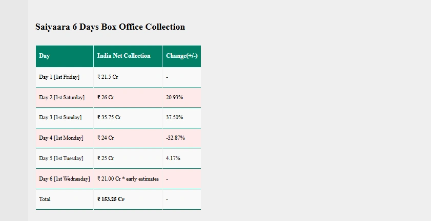 Saiyaara Box Office Collection Day 6 कितना हुआ?