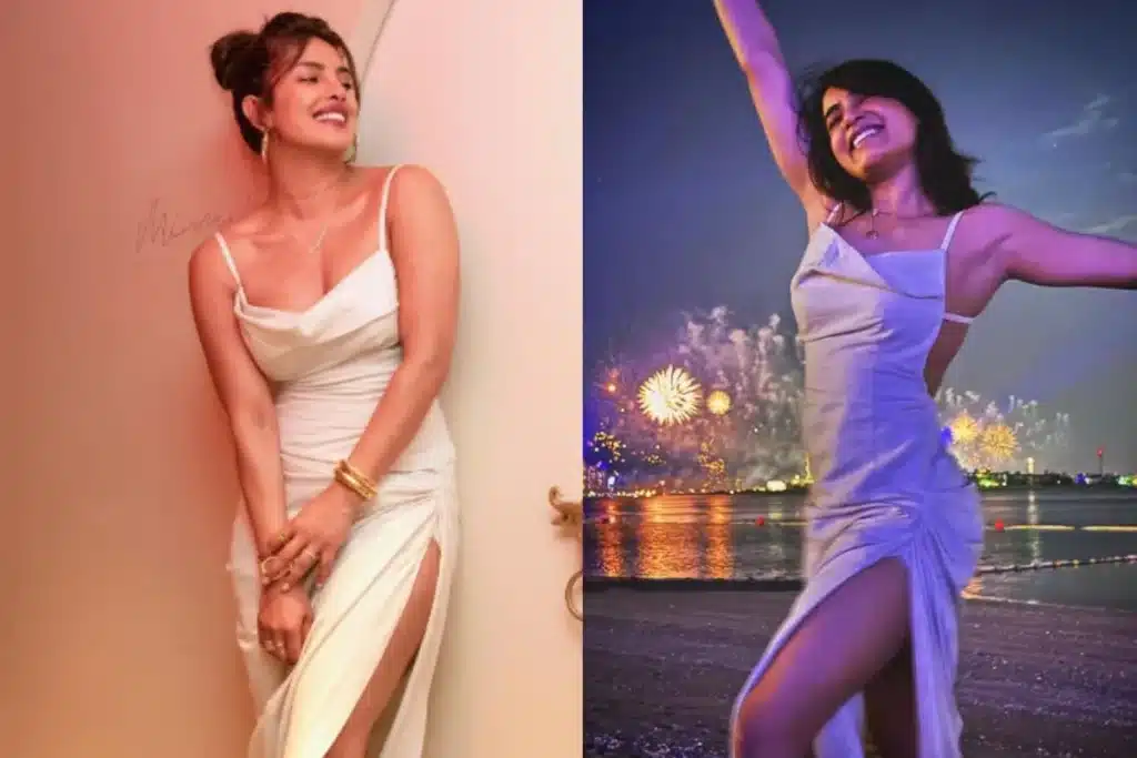 वहीं लेटेस्ट सामंथा रुथ प्रभु के लुक की बात करें तो उन्होंने इस ड्रेस को फंकी ओपन वेब हेयर स्टाइल से खास दे रही है। ओवरलैपिंग नेकलाइन में वह न्यू ईयर के जश्न को मनाती हुई नजर आई। कहने में दो राय नहीं है की एक्ट्रेस का यह अंदाज वाकई काफी अलग है लेकिन सोशल मीडिया पर मानो हलचल मच गई जब सामंथा ने प्रियंका चोपड़ा के इस आउटफिट को कॉपी किया। लोगों का ध्यान सामंथा की ड्रेस पर अटक गई है। खास बात यह है कि एक्ट्रेस ने इस लुक को लेयर्ड नेकलेस के साथ कंप्लीट किया है।