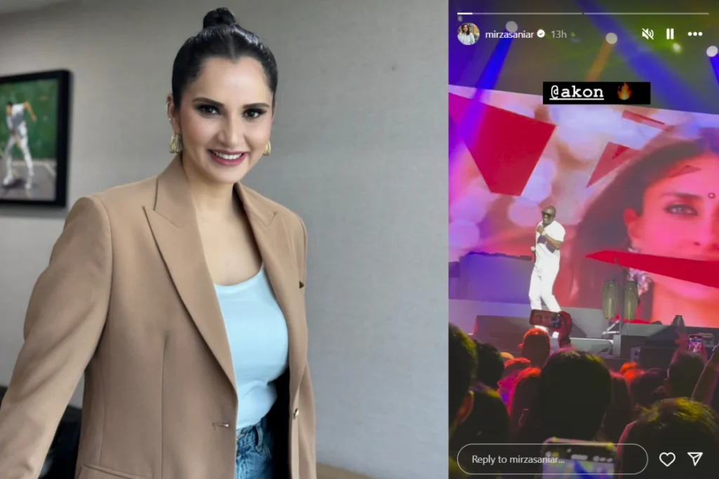 दरअसल सानिया मिर्जा (Sania Mirza) ने अपने सोशल मीडिया अकाउंट पर एक स्टोर लगाई है।सानिया की स्टोरी वीडियो में अमेरिकन सिंगर Akon गाना गाते नजर आ रहे है। जानकारी के लिए बता दे कि आको वही सिंगर है जिन्होंने बॉलीवुड सॉन्ग ‘छम्मक छल्लों’ को गया था। वीडियो में Akon ‘छम्मक छल्लों’ गाने पर वाइब करते नजर आ रही है। सानिया की इस स्टोरी ने सानिया के बॉलीवुड के साथ उनके कनेक्श को उजागर कर दिया है। तो चलीए जानते है सानिया मिर्जा और उनके बॉलीवुड कनेक्शन के बारे में.