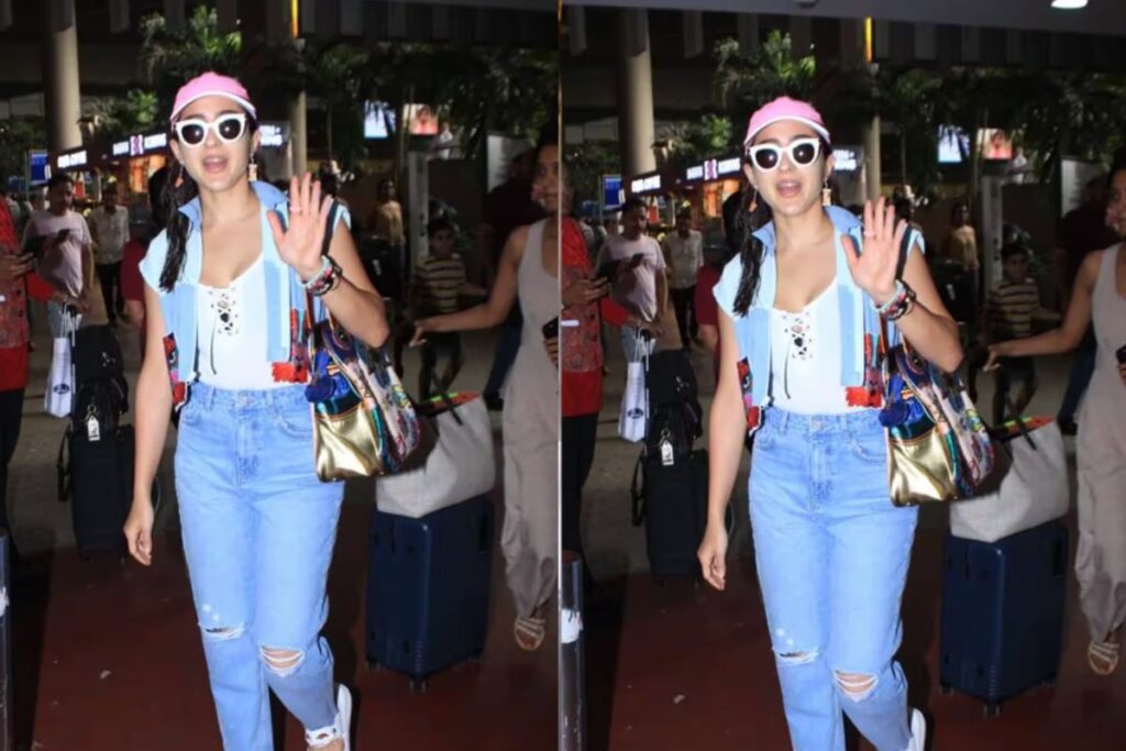 Sara Ali Khan: बॉलीवुड स्टार सारा अली खान सुर्खियों में रहती हैं और फैंस उन्हें देखना पसंद करते हैं। अपनी खूबसूरती और फिटनेस को लेकर चर्चा में रहने वाली सारा अली खान का लेटेस्ट लुक सोशल मीडिया पर है। इसे देख फैंस तारीफ करते हुए नहीं थक रहे हैं। दरअसल हाल ही में सारा को एयरपोर्ट पर स्पॉट किया गया और इस दौरान वो अलग अंदाज में नजर आई। वायरल हो रहे इस लुक की बात करें तो सारा ने टी-शर्ट को डेनिम क्रॉप जैकेट और जींस के साथ पेयर करती हुई नजर आई। उन्होंने अपने इस लुक को पिंक कैप से कंप्लीट किया और इस ड्रेसिंग सेंस को देख कायल हो गए हैं। वहीं एक्ट्रेस ने गॉगल्स से इसे खास टच देती हुई नजर आई।