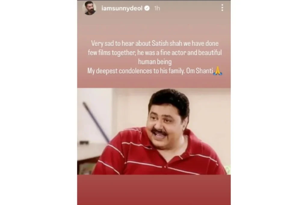 वहीं सतीश शाह के जाने से बॉलीवुड एक्टर सनी देओल भी अपना दुख व्यक्त करते हुए देख उन्होंने लिखा, “सतीश शाह हमने साथ में कम फिल्में की है लेकिन यह सुनकर दुख हुआ। वह एक मजेदार एक्टर थे और उससे भी खूबसूरत इंसान। उनकी फैमिली के लिए मेरी संवेदना ओम शांति।”