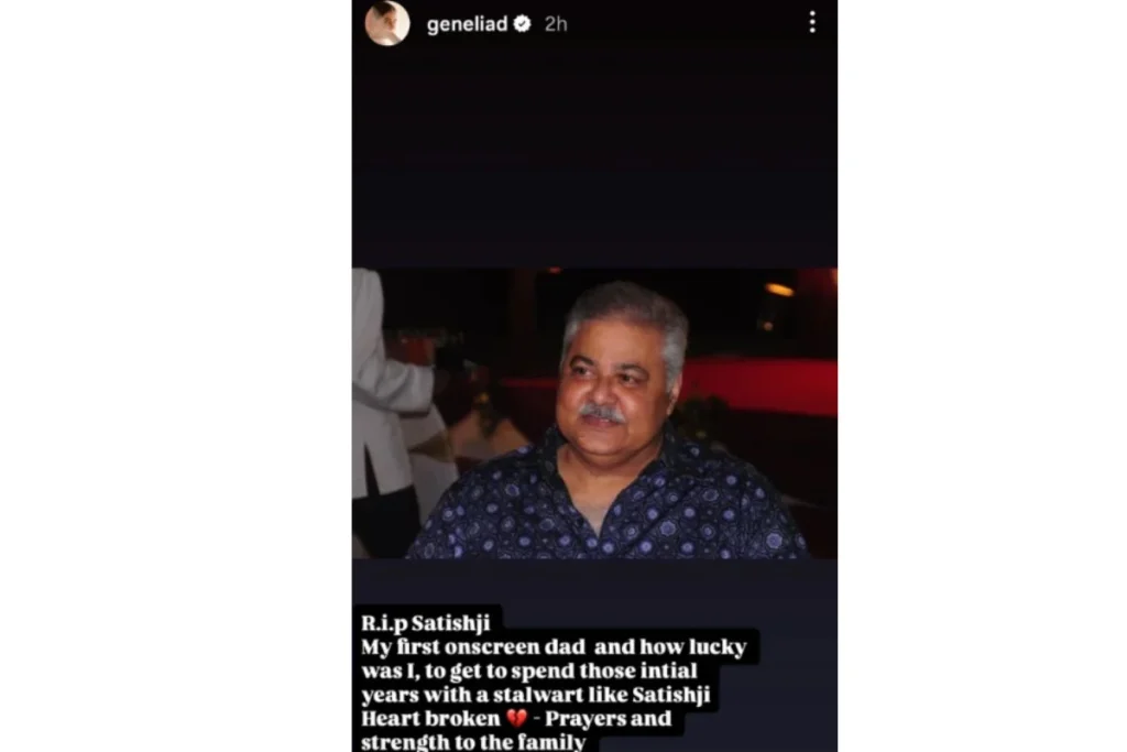 सतीश शाह की मौत से जेनेलिया डिसूजा टूट चुकी है और उन्होंने इंस्टाग्राम पर उनकी एक तस्वीर शेयर करते हुएलिखा, “सतीश जी की आत्मा को शांति मिले। मेरे पहले ऑनस्क्रीन पिता और मैं कितनी भाग्यशाली थी कि मुझे सतीश जी जैसे दिग्गज के साथ शुरुआती साल बिताने का मौका मिला। हम टूट गए हैं – परिवार के लिए प्रार्थना और शक्ति।”