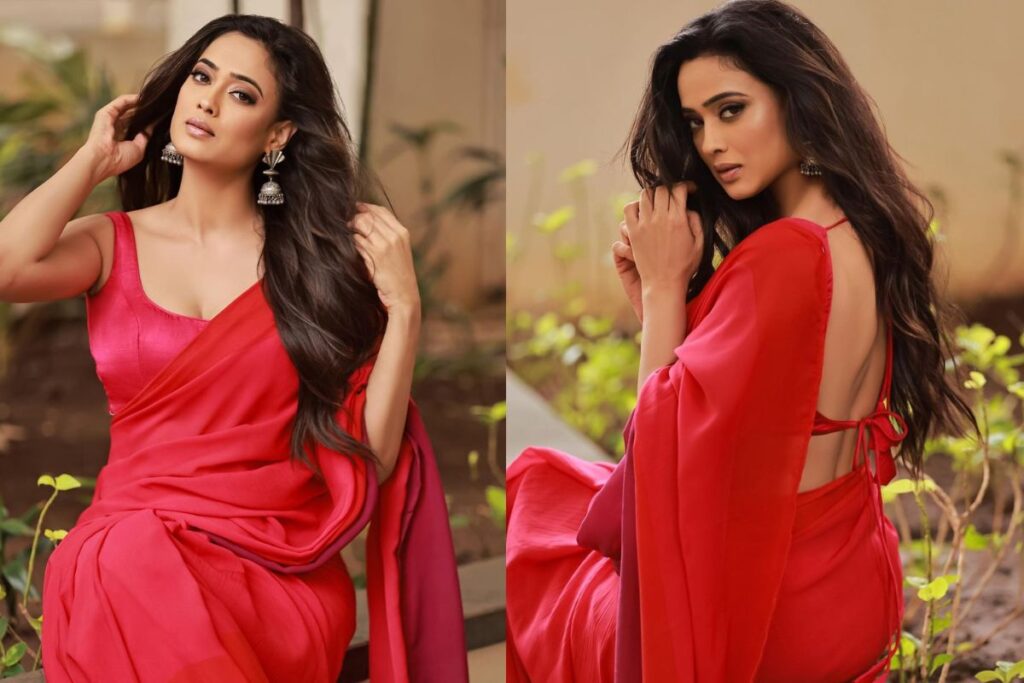 श्वेता तिवारी की लेटेस्ट फोटोज की बात करें तो वह लाल सॉफ्ट सिल्क साड़ी में कयामत ढा रही है। मेसी हेयरस्टाइल और दो डोरी पट्टी की उनकी ब्लाउज वाकई उनके लुक को ग्लैमरस बनाने के लिए काफी है। सिल्वर इयररिंग्स से उन्होंने अपने इस लुक को कंप्लीट किया है। न्यूड लिपस्टिक और मिनिमल मेकअप में श्वेता अपनी अदाओं से फैंस को रिझाने में कामयाब रही है। वहीं हर तस्वीर में वह अलग-अलग पोज दे रही हैं। साड़ी में न सिर्फ वह अपनी टोंड फिगर बल्कि क्लीवेज को भी फ्लॉन्ट कर रही हैं और लोग उन्हें देख आंहे भर रहे हैं।