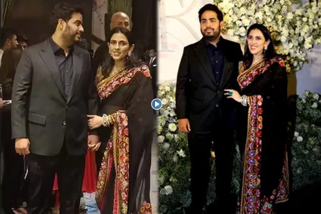 Sidharth Kiara Mumbai Reception: थ्रेडवर्क ब्लैक साड़ी में आकाश अंबानी संग पहुंची श्लोका, फ्लॉन्ट किया एमरेल्ड ग्रीन रिंग