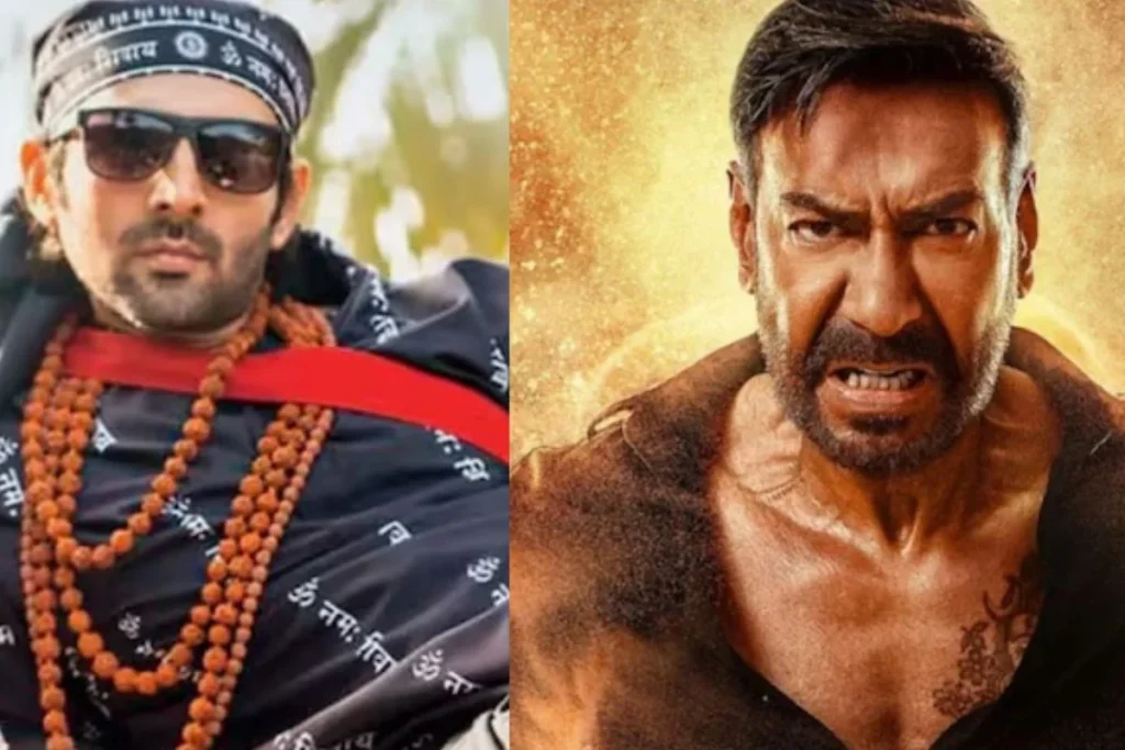 Singham Again vs Bhool Bhulaiyaa 3: इस बात में कोई शक नहीं है कि कार्तिक आर्यन और अजय देवगन (Ajay Devgn) बॉलीवुड के मशहूर अभिनेताओं के लिस्ट में शुमार है। जहां एक तरफ अजय पिछले लंबे दशक से इंडस्ट्री में राज कर रहे हैं तो कार्तिक आर्यन (Kartik Aaryan) ने भी कुछ ही समय में अपनी एक अलग पहचान बना ली है। वह अपने हैंडसम हंक अंदाज से फैंस को क्रेजी बनाना बखूबी जानते हैं। ऐसे में जब कार्तिक और अजय की फिल्म एक ही दिन बॉक्स ऑफिस पर रिलीज हुई वह भी सीक्वल तो लोगों की बेचैनी बढ़ गई लेकिन फैंस से किसे मिल रहा है ज्यादा प्यार। हम बात कर रहे हैं अनीस बज्मी की ‘भूल भुलैया 3‘ (Bhool Bhulaiyaa 3) और रोहित शेट्टी की ‘सिंघम अगेन‘ (Singham Again) की जो फिलहाल लोगों के सिर पर चढ़कर बोल रहा है।