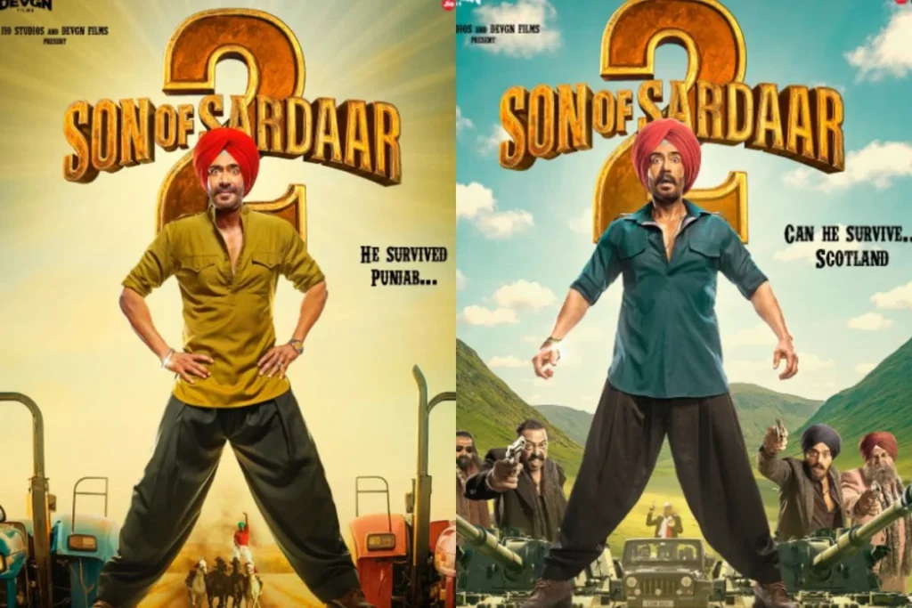 सन ऑफ सरदार 2 से न्यू पोस्टर्स को शेयर करते हुए Ajay Devgn ने कैप्शन में लिखा, “वह पंजाब से बच गया क्या वह स्कॉटलैंड से बच पाएगा। Son Of Sardaar 2 इस 25 जुलाई को सिनेमाघरों में। जहां दो न्यू लुक में अजय देवगन नजर आ रहे हैं। माथे पर पगड़ी और उनका यह पंजाबी लुक देखकर निश्चित तौर पर फैंस बेहाल नजर आ रहे हैं।एक्सप्रेशन को देखकर ठहाके लगाने पर मजबूर हो गए हैं यूजर्स और अजय देवगन सोशल मीडिया पर अपने फैंस को दीवाना बनाने के लिए आ गए हैं। सन ऑफ़ सरदार 2 से न्यू पोस्टर्स चर्चा में है।