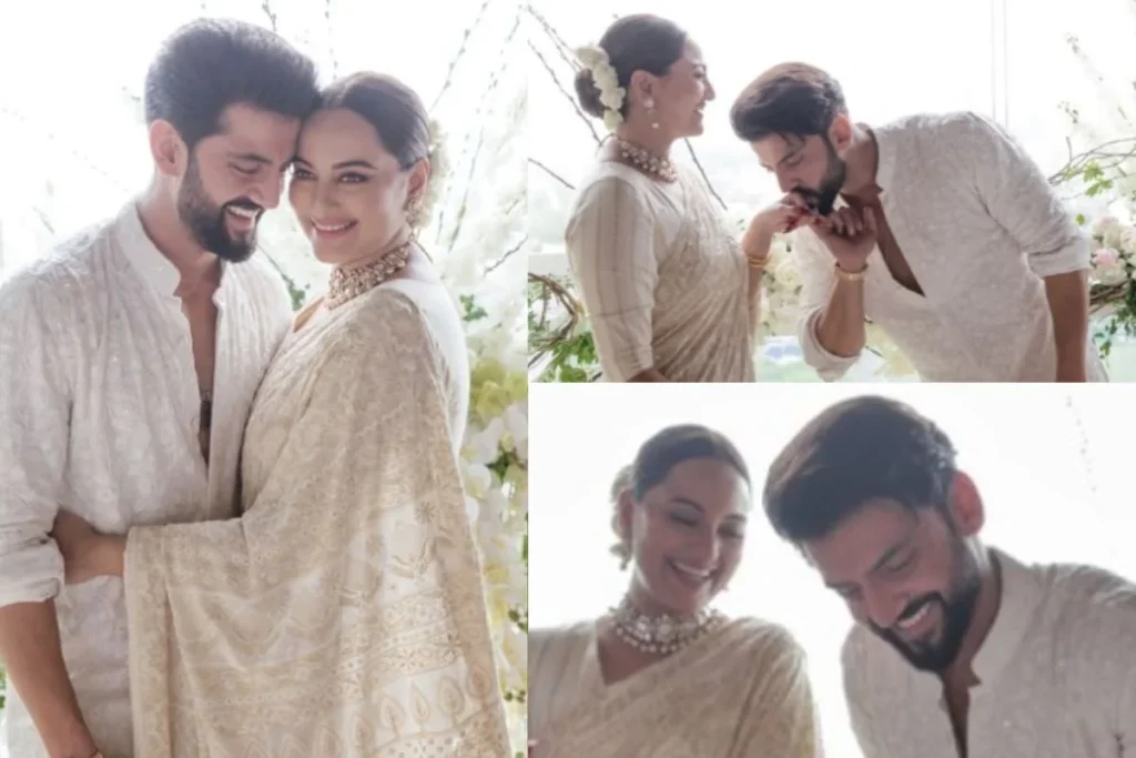 तस्वीरों की बात करें तो एक तस्वीर में सोनाक्षी के हाथों को जहीर चूमते हुए नजर आए तो दूसरी तस्वीर में सोनाक्षी और जहीर अपने परिवार के साथ दिख रहे हैं जिसमें शत्रुघ्न सिन्हा भी दिखाई दे रहे हैं। वहीं एक और फोटो में दोनों रोमांटिक पोज देते हुए नजर आए। इन तस्वीरों को शेयर करते हुए सोनाक्षी ने कैप्शन में लिखा, “आज ही के दिन 7 साल पहले 2017 में हमने एक दूसरे की आंखों में प्यार को सबसे शुद्ध रूप में देखा और उसे थामे रखने का फैसला किया। आज उस प्यार ने हमें सभी चुनौतियों और जीत के माध्यम से मार्गदर्शन किया है। इस पल तक ले गया। जहां हमारे दोनों परिवारों और हमारे दोनों देवताओं के आशीर्वाद से हम अब पति-पत्नी हैं। यहां प्यार उम्मीद और एक दूसरे के साथ सभी खूबसूरत चीजें हैं अब से लेकर हमेशा के लिए सोनाक्षी जहीर।