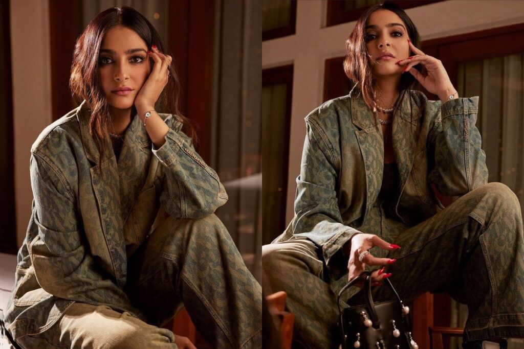 सोनम के लुक की बात करें तो उन्होंने स्मोकी आई लुक रखा है और चेहरे पर न्यूड मेकअप किया है। इसके साथ अभिनेत्री ने अपने लंबे बालों को कर्ल्स किया है। इन तस्वीरों में अभिनेत्री के हाथ में काले रंग का बैग भी दिख रहे हैं जिसपर सफ़ेद बीड्स लगे हुए हैं। इन तस्वीरों के साथ सोनम ने अपने पति के स्नीकर ब्रांड के नए कलेक्शन पर अपडेट देते हुए लिखा “हमारा बहुप्रतीक्षित नया कलेक्शन सुबह 11:00 बजे स्टोर्स और ‘वेज नॉन वेज’ की वेबसाइट पर लॉन्च हुआ है। ‘वेज नॉन वेज’ के नए कलेक्शन में कस्टम ‘वेज नॉन वेज’ के मोनोग्राम के साथ डेनिम जींस, जीन्स जैकेट और ब्लेज़र की एक सीरीज़ शामिल है। इस कलेक्शन में लेजर प्रिंटेड वेज नॉनवेज मोनोग्राम के साथ हैवी-वेट कॉटन डेनिम भी शामिल है”।