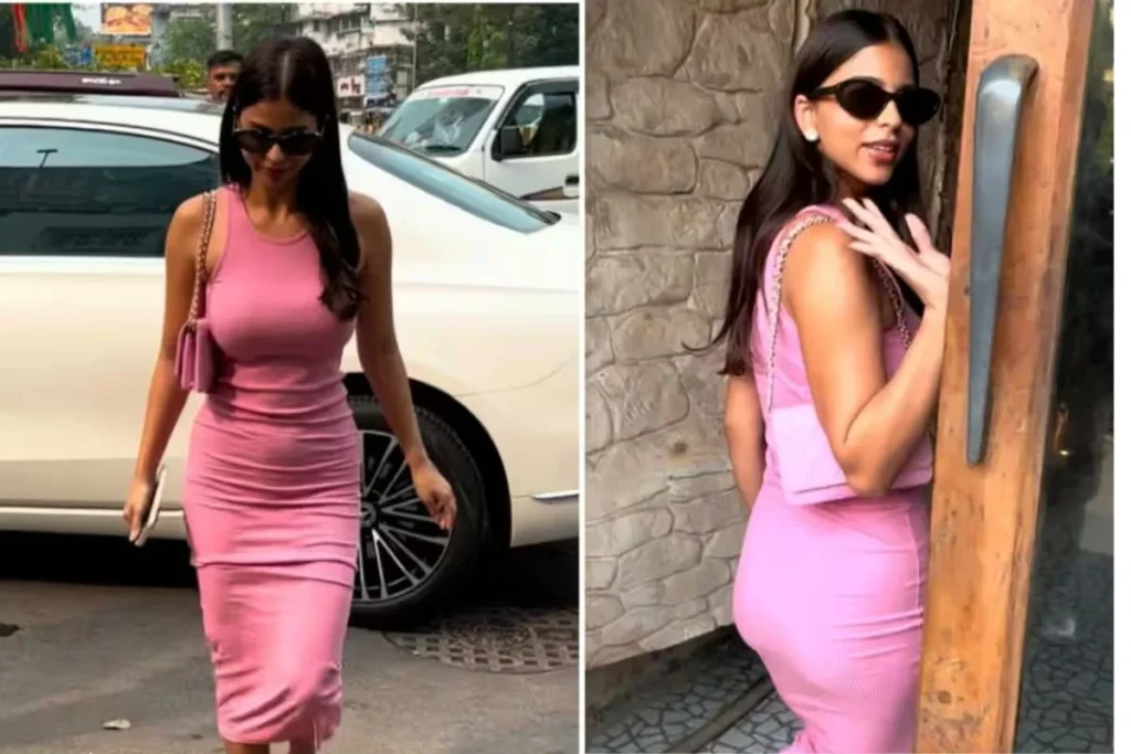 एसआरके की बेटी सुहाना खान जैसे ही कार में से निकलती हैं सभी पैप्स के कैमरे खुल जाते हैं, इस बीच सुहाना टाइट पिंक वन पीस ड्रेस में आंखों पर चश्मा लगाए हुए नजर आ रही हैं. इसमें उन्होने काफी हल्का मेकअप कर रखा है साथ ही लुक को कंप्लीट करने के लिए बालों को खोला हुआ है. हाथों में गुलाबी वेग लिए हुए सुहाना बिल्डिंग के अंदर जाती हुई दिख रही हैं, इस बीच जब पैपराजी उन्हे नाम लेकर बुला रहे होते हैं तो वो रुकती तो नहीं हैं मगर जाते हुए पीछे मुड़कर हाय जरूर बोलती हैं।