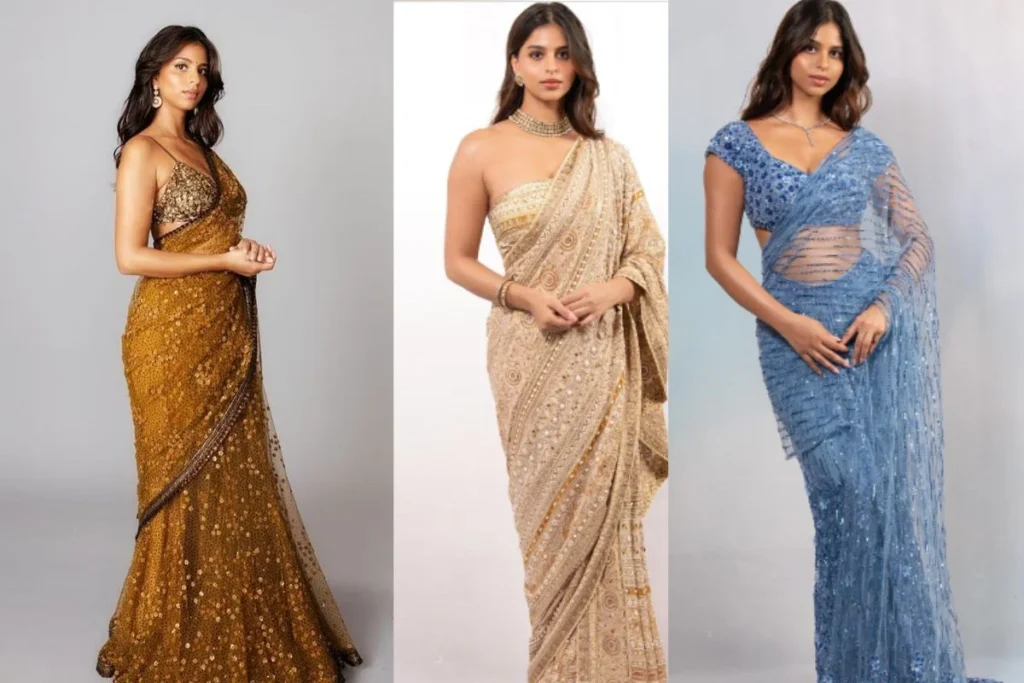 Suhana Khan: सुहाना खान शाहरुख खान की लाडली सोशल मीडिया पर चर्चा में बनी रहती है। ‘द आर्चिज’ से ओटीटी प्लेटफॉर्म पर नजर आ चुकी सुहाना बहुत जल्द शाहरुख खान के साथ ‘किंग’ फिल्म में दिखाई दे सकती है लेकिन इस सबसे हटके वह अपने लुक्स को लेकर सुर्खियों में है। फैशन सेंस की बात की जाए तो वह हमेशा लाइमलाइट बटोरने में कामयाब रहती है और उनके पास खूबसूरत साड़ियों का एक जबरदस्त कलेक्शन है। टीनेज से लेकर किसी भी उम्र के लिए उनकी साड़ियां एक बेस्ट लुक देने के लिए काफी है। ऐसे में आप उनकी तरह कुछ बजट फ्रेंडली साड़ी को स्टाइल कर सकती हैं।