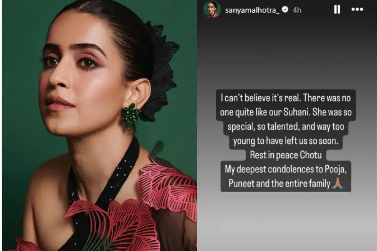 दरअसल,जहां मीडिया जगत के चारों ओर शोक की लहर दौड़ी हुई है। वहीं, दंगल की पूर टीम सदमें हैं। साथ ही सोशल मीडिया पर हर कोई सुहानी को श्रद्धांजलि दे रहा है। इसी बीच एक्टर सान्या मल्होत्रा ने भी अपना दुख जताया है। उन्होने अपने इंस्टाग्राम हैंडल पर पोस्ट शेयर किया है, जिसमें उन्होंने सुहानी की मौत का दुख व्यक्त किया है।
