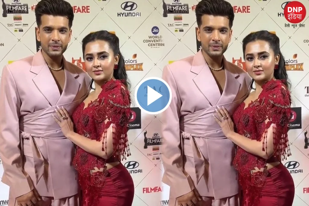 Tejasswi Prakash Karan Kundrra: तेजस्वी प्रकाश और करण कुंद्रा वह कपल हैं जो अपनी केमेस्ट्री से हर बार लोगों का दिल जीत लेते हैं। दोनों की मुलाकात बिग बॉस 15 में हुई लेकिन इस घर से बाहर निकलने के बाद भी दोनों साथ हैं। कपल को आए दिन साथ में स्पॉट किया जाता है और उनकी केमेस्ट्री लोगों को कायल कर देती है। इस बीच कपल को फिल्मफेयर अवार्ड्स 2023 के रेड कारपेट पर खास अंदाज में देखा गया। इस दौरान तेजस्वी जहां रेड ड्रेस में काफी खूबसूरत नजर आ रही हैं वहीं करण सूट में हैंडसम दिख रहे हैं। इस बीच सोशल मीडिया पर वीडियो चर्चा में हैं जिसमें दोनों कपल गोल देते नजर आ रहे हैं।