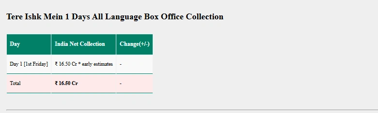 Tere Ishq Mein Box Office Collection Day 1 कितना हुआ?