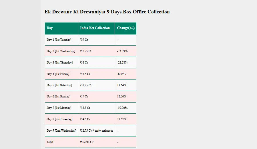 सोनम बाजवा और हर्षवर्धन राणे की दिल छू लेने वाली दर्दनाक लव स्टोरी एक दीवाने की दीवानियत ने भारत में 52.25 करोड़ रुपए कमा चुकी है।