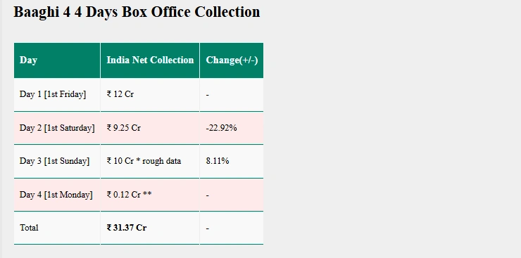 Tiger Shroff और Sanjay Dutt की मूवी ‘बागी 4’ Box Office Collection तीसरे दिन यानी की रविवार को 10 करोड़ रुपए हुआ है।