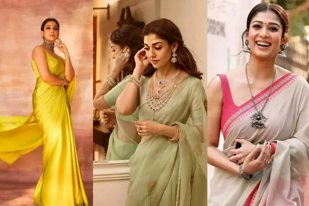 Nayanthara: साउथ के बाद बॉलीवुड में अपनी शानदार एक्टिंग से हर किसी के होश उड़ाने वाली नयनतारा (Nayanthara) अपनी एक्टिंग ही नहीं खूबसूरती के लिए भी जानी जाती हैं। एक्ट्रेस अपनी खूबसूरती को उभारने के लिए अपनी स्टाइलिंग पर ज्यादा ध्यान देती हैं जिससे वह ट्रेडिशनल हो या वेस्टर्न सब में ही हसीन दिखती हैं। यहीं आज हम आपके लिए नयनतारा के बेस्ट साड़ी लुक्स लेकर आए हैं जिसे आप भी अपना सकती हैं।