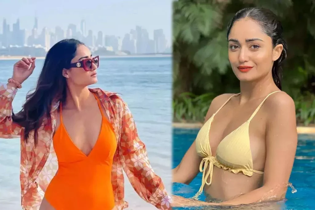 येलो बिकिनी में पानी में आग लगा रही हैं त्रिधा
