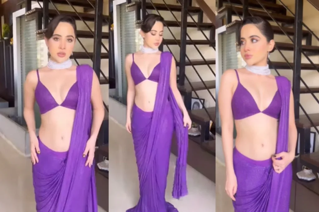 उर्फी जावेद के इस लुक की बात करें तो वह पर्पल रेडीमेड साड़ी पहन रखी है जिसमें वह बेहद खूबसूरत लग रही है। एक्ट्रेस ने वी नेकलाइन स्ट्रिप ब्लाउज को स्टाइल किया और अपने कर्व्स को जमकर फ्लॉन्ट करती हुई दिखी। उनके इस लुक को देखने के बाद हेटर्स की भी बोलती बंद हो गई क्योंकि वह हमेशा अजीबोगरीब लुक से सोशल मीडिया पर चर्चा में रहती है। इस वीडियो में वह पर्ल मल्टीलेयर चोकर और इयररिंग्स के साथ ग्लॉसी मेकअप से लुक को कंप्लीट कर रही है।