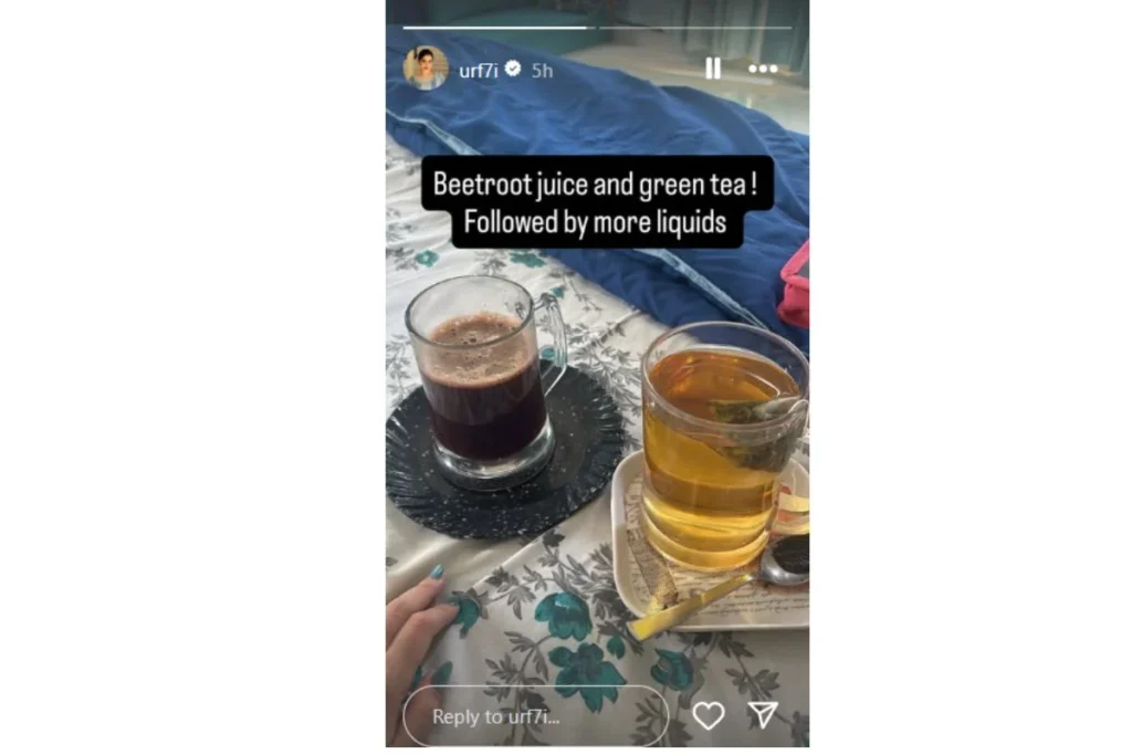ऐसे में उर्फी जावेद की तरह आप भी अपने शरीर में लिक्विड की कमी को पूरा करने के लिए ग्रीन टी और बीटरूट जूस का सेवन कर सकते हैं लेकिन आप चाहे तो डाक्टरी सलाह ले सकते हैं।