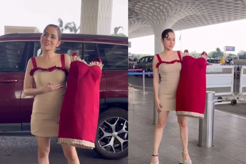 जहां तक इस वीडियो की बात करें तो इसमें उर्फी जहां एक ड्रेस को स्टाइल करती हुई नजर आई। वहीं दूसरी ड्रेस को हाथ में रखकर वह पैपराजी के साथ पोज़ दे रही है। इस वीडियो में आप देख सकते हैं कि उर्फी जावेद क्रीम कलर की शॉर्ट ड्रेस में नजर आ रही है जिसके स्ट्रिप्स मैरून कलर में हैं। वहीं उर्फी के हाथ में ड्रेस की बात करें तो वह मैरून कलर की शॉर्ट ड्रेस है जिसमें स्ट्रिप्स क्रीम कलर में है। उर्फी ने अपने लुक को मैचिंग हाई हील्स से कंप्लीट किया। वहीं बन हेयर स्टाइल और मिनिमल ग्लोइंग मेकअप में हमेशा की तरह उर्फी अलग नजर आई।