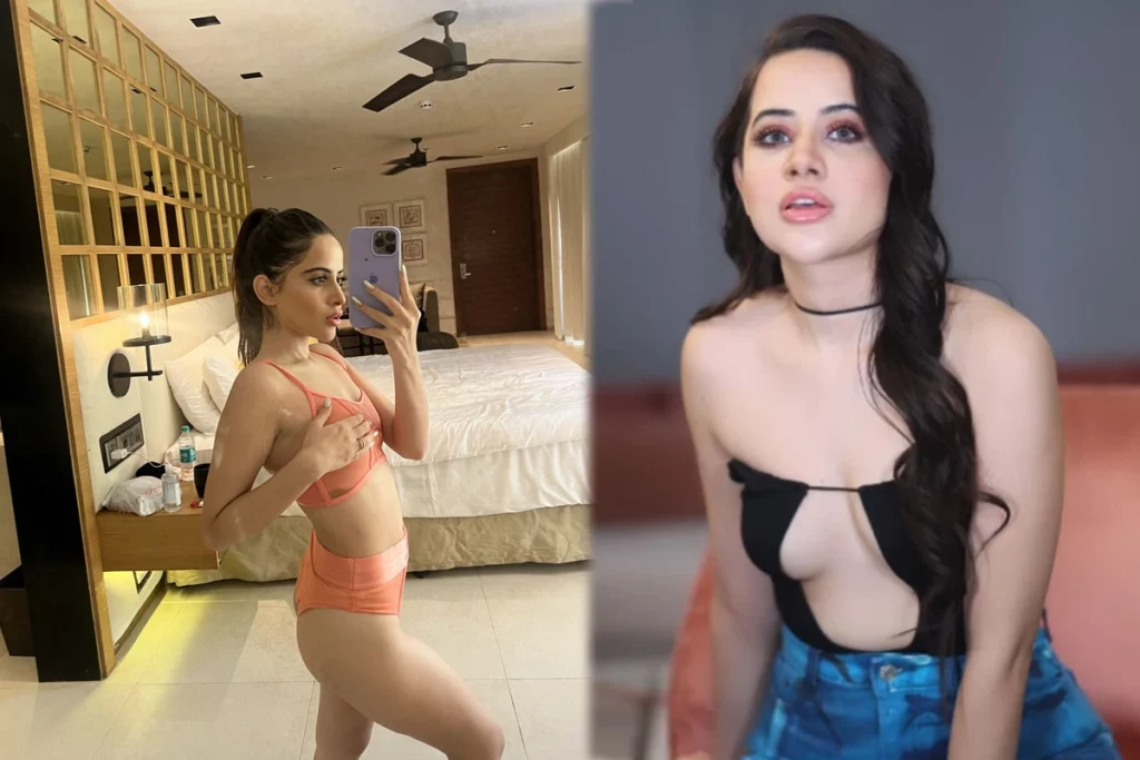 ऑरेंज मोनोकिनी में बोल्ड पोज देती दिखीं उर्फी