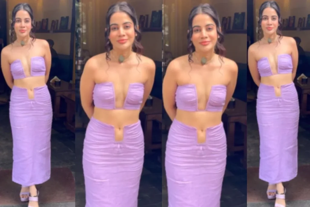 Urfi Javed लैवेंडर कलर की ऑफ शोल्डर ब्रालेट को स्लिट बैक कट स्कर्ट के साथ पेयर करती हुई नजर आ रही है जिसमें वह अपने परफेक्ट शेप को फ्लॉन्ट कर रही है। वह मैचिंग हाई हील से कंप्लीट टच देती हुई नजर आई। एक बार फिर बन हेयर स्टाइल के साथ स्टाइलिश चोकर नेकलेस से अपने स्टाइल में खास तड़का लगाती हुई दिखी और उसे देखने के बाद लोगों के होश उड़ गए। कहने में दो लड़ाई नहीं है कि उनका यह अंदाज हमेशा से हटके है।