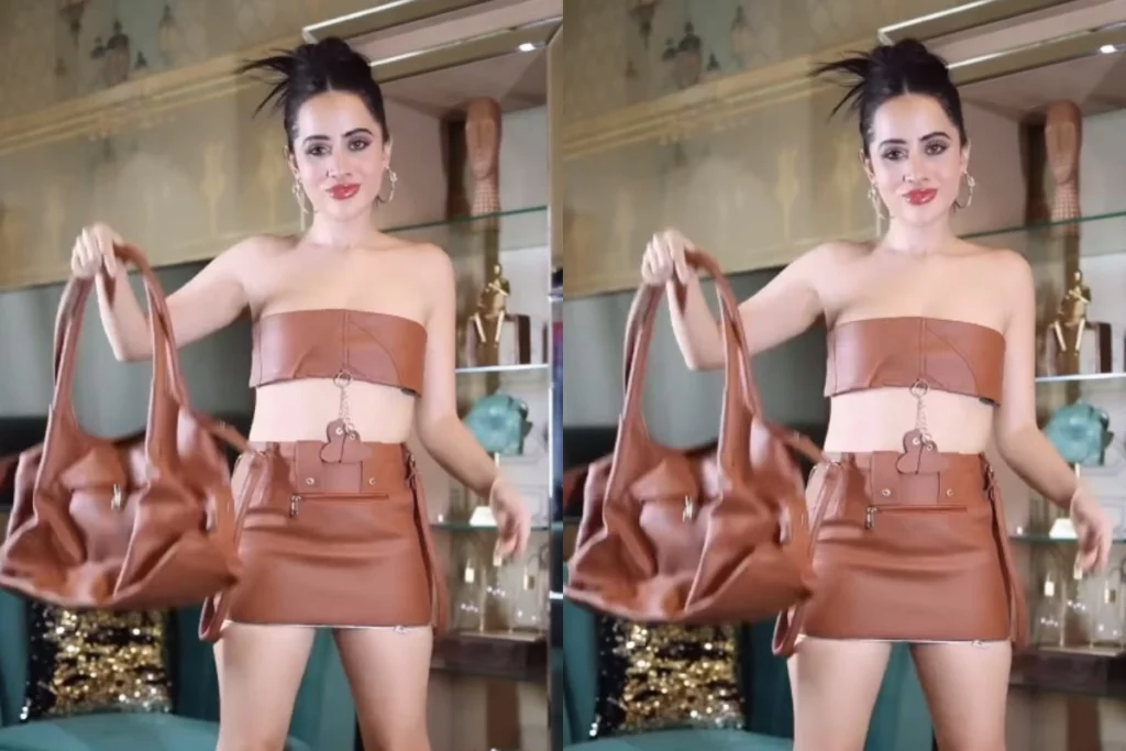 उर्फी ने सोशल मीडिया पर अपना एक वीडियो शेयर किया जिसमें वह पर्स से बनी हुई ड्रेस को पहनी हुई नजर आई। जी हां, वीडियो में आप देख सकते हैं कि उर्फी पहले टी-शर्ट में कैजुअल लुक में नजर आती हैं। वहीं उनके हाथ में ब्राउन कलर का एक हैंडबैग होता है। अगले ही पल और फिर उर्फी उसी हैंडबैग की ड्रेस बना कर सामने आती हैं। कहने में दो राय नहीं है कि यह ड्रेस काफी स्टाइलिश है और जिस तरह से उर्फी ने इसे डिजाइन किया है वह काबिले तारीफ है। उर्फी ने इसे डांगरि लुक दिया है और जिस तरह से पॉकेट से लेकर हैंडल तक को यूज़ किया गया है वह सच में काफी यूनिक है।