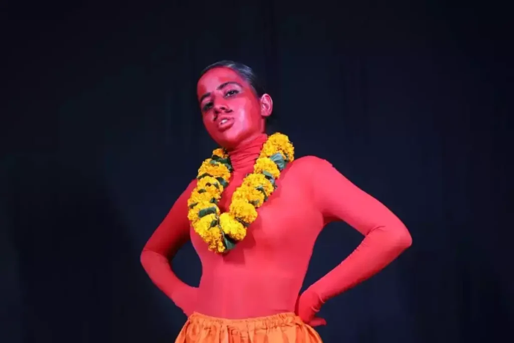 इस फोटो में उर्फी जावेद ने नाम मात्र के कपड़े पहने हुए हैं। उन्होंने अपने शरीर के ऊपरी हिस्से को कागज से बनाएं गए फूलों से ढकने की कोशिश की है।