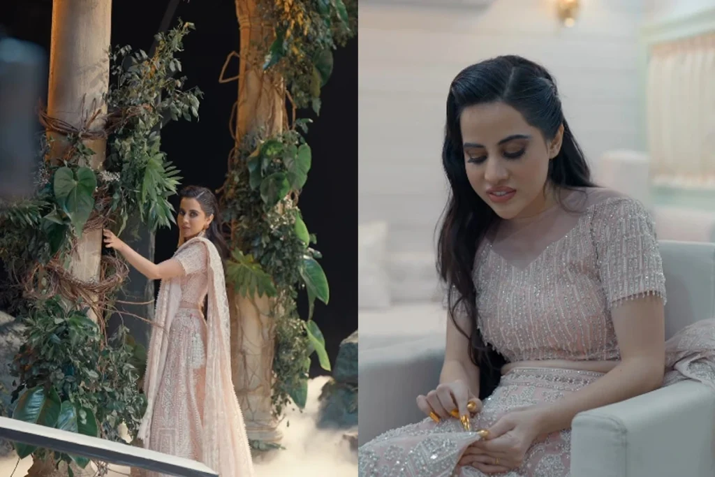 लेटेस्ट फोटोशूट का एक वीडियो भी सोशल मीडिया पर खूब लाइमलाइट में है। वीडियो में आप देख सकते हैं कि उर्फी पेस्टल कलर के लहंगे में कातिलाना नजर आ रही हैं। इस लहंगे पर स्टोन वर्क है जो इसे खास बना रहा है। उर्फी ने इस लुक को मैचिंग स्टाइलिश इयररिंग्स से कम्पलीट किया है। वहीं उनका यह लुक मिनिमल मेकअप में काफी खास है। एक्ट्रेस इस दौरान अप्सरा नजर आ रही हैं। वीडियो में एक्ट्रेस दुपट्टे से पोज देती हुई दिखी और एक्ट्रेस हमेशा से काफी अलग नजर आई।