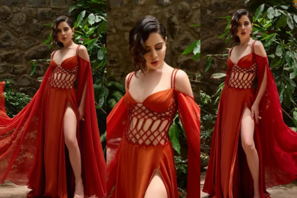 दरअसल उर्फी ने सोशल नेशन इवेंट के दूसरे दिन रेड कलर की डीपनेक कट आउट डिटेल्स वाली थाई हाई स्लिट ड्रेस पहनकर पोज देती हुई नजर आई। इस ड्रेस में वह कर्वी फिगर और टोंड लेग्स को फ्लॉन्ट कर रही हैं और उन्हें देखकर फैंस दिल हार बैठे हैं। उर्फी जावेद ने स्टाइलिश अंदाज में अपने बालों को बांधा है और उनका लुक वाकई दिलकश है। डार्क मस्कारा, ग्लिटर आईशैडो, लाइट पिंक ब्लश और मैचिंग लिपस्टिक में उर्फी का यह लुक देख लोग तारीफ करने पर मजबूर हो गए हैं। एक्ट्रेस ने इयररिंग्स, रिंग्स और हिल्स के साथ इस लुक को एक्ससाइज किया है।