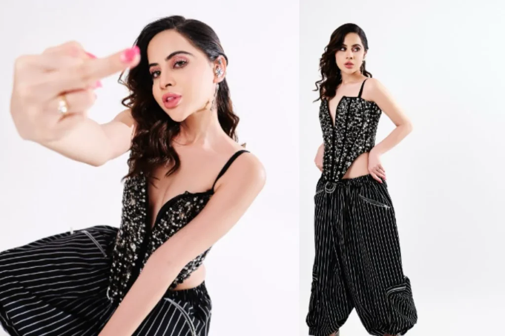 तस्वीरों की बात करें तो इसे शेयर करते हुए उर्फी ने कैप्शन में लिखा, “प्लीज गाइज फॉलो कर लो।” पहली तस्वीर में उर्फी जावेद मिडिल फिंगर को फ्लॉन्ट करती हुई नजर आ रही है। वहीं उनके लुक की बात करें तो ब्लैक शिमर ट्यूब टॉप को वह धोती स्टाइल पैंट के साथ कैरी करती हुई दिखी। ब्लैक एंड व्हाइट इस ड्रेस में उर्फी काफी हटके नजर आ रही है। कर्ल हेयर स्टाइल के साथ ग्लोइंग मेकअप और हाई हील से वह अपने इस लुक को कंप्लीट कर रही हैं। कहने में दो राय नहीं है कि उनका यह लुक सोशल मीडिया पर चर्चा में है।